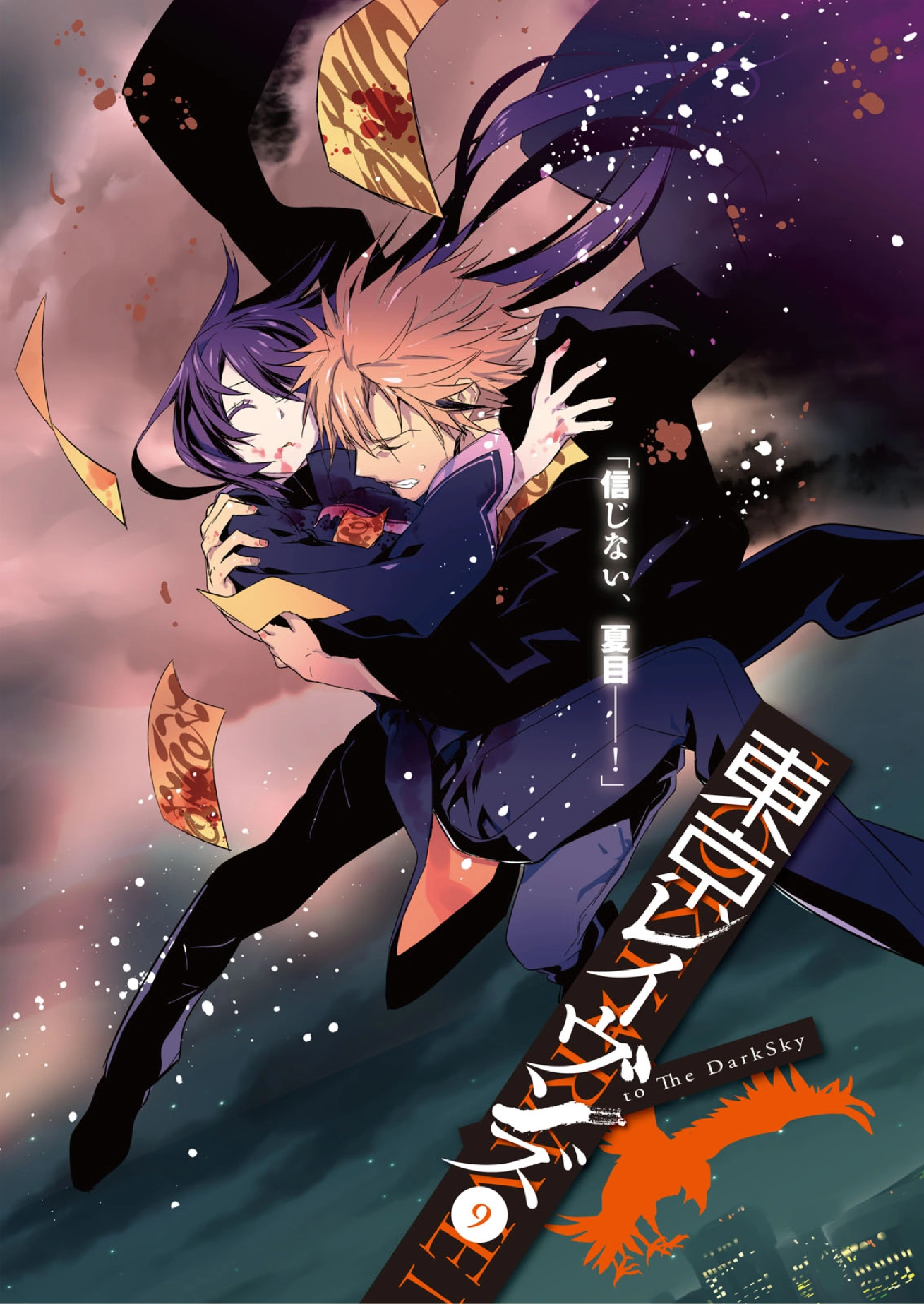 Có một cô gái tóc đỏ cầm chiếc lồng chim. Là một Thức thần quạ ba chân. Những sợi lông vũ đen huyền và những hạt sáng vàng kim lấp lánh[note76352]. Harutora bị chi phối và nổi cơn cuồng loạn[note76353]. Mình đã cưỡi Yukikaze[note76354] đuổi theo cậu ấy lên bầu trời.